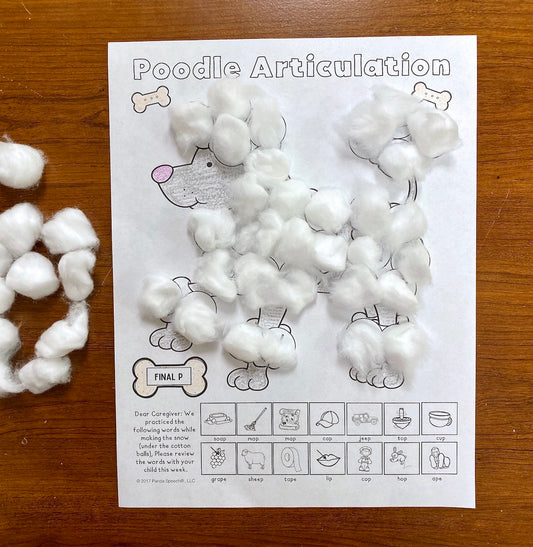 Poodle Articulation and Language! Speech Therapy Cotton Ball craft