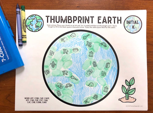 Articulation Thumbprint Earth: Speech Therapy Art Activity