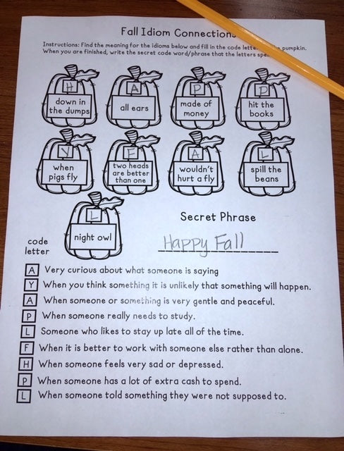 Fall Language Connections ~ Find the Secret Phrase ~ Speech Therapy Vocabulary Activity