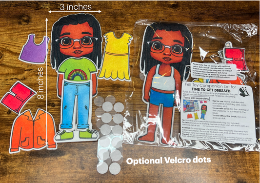 • Felt Story Companion Set for Time to Get Dressed~ Felt character from book (Mya) and clothing items