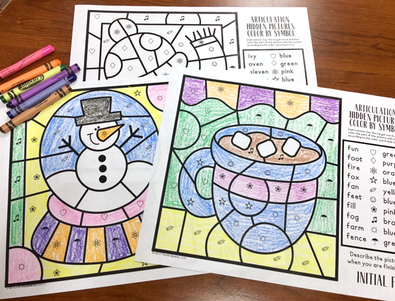 Color by Symbol Hidden Pictures - WINTER ~ A Speech Therapy Activity (Articulation and Language)