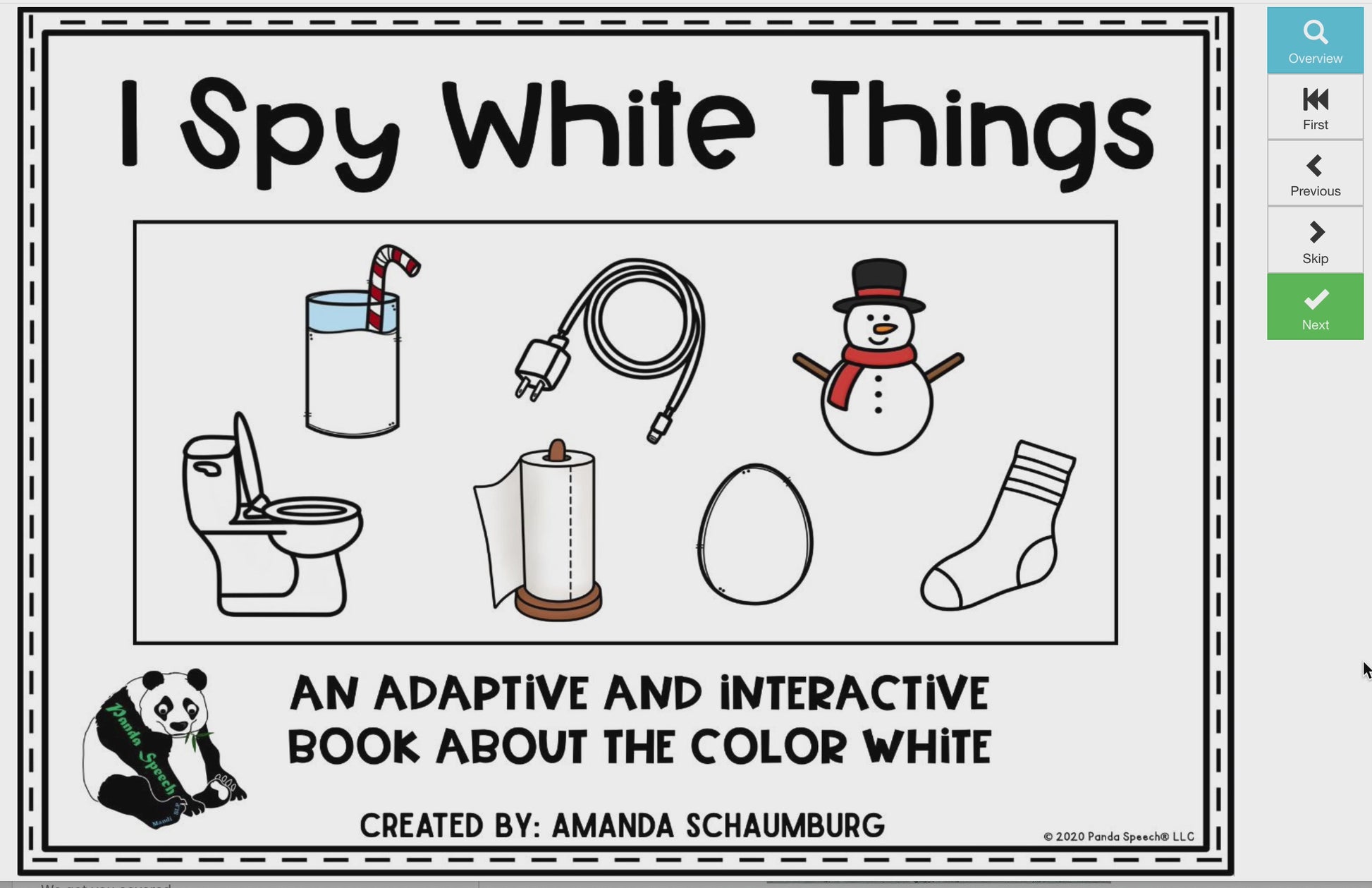 *You may not copy any part of this document (content, layout, format, idea, design) and reproduce it or create a similar product using my idea. All rights reserved to Panda Speech, LLC. This original activity was imagined and created by Amanda Schaumburg, all rights reserved. PLEASE RESPECT COPYRIGHT LAWS!!