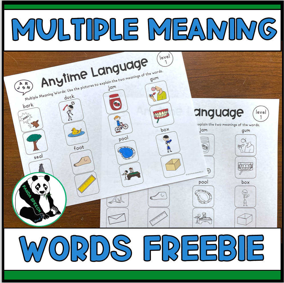 I designed this worksheet as a visual cue for students learning multiple meaning words. I use this page when I start teaching the concept. I have found that this leads to greater understanding (the student can visually see images that depict the different meanings). It also gives them a starting place when trying to define the two different meanings. There is a level two (without pictures) available in my Anytime Language full product.