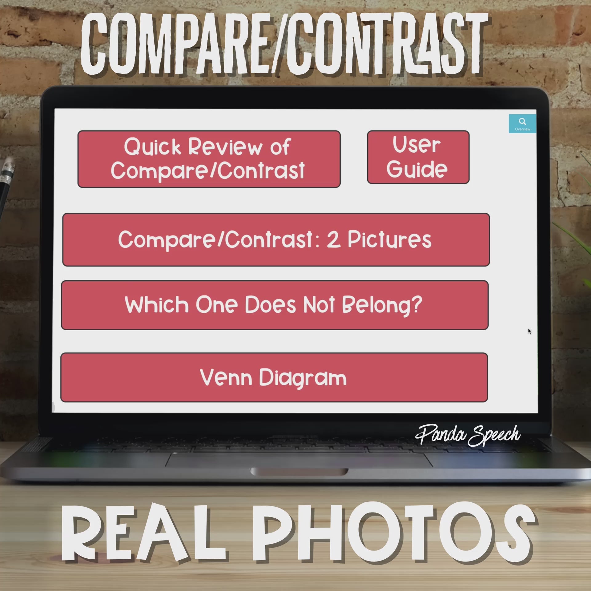 These cards were created to be work on basic compare/contrast skills in three different activities: comparing and contrasting two pictures, which one doesn’t belong, and venn diagrams. I provided a quick compare/contrast review to use with students if needed. The main purpose of this deck was to provide practice but you can use them to teach the concepts too. The picture stimuli are real photos that children can relate to. Comes with printable cards and BOOM cards.