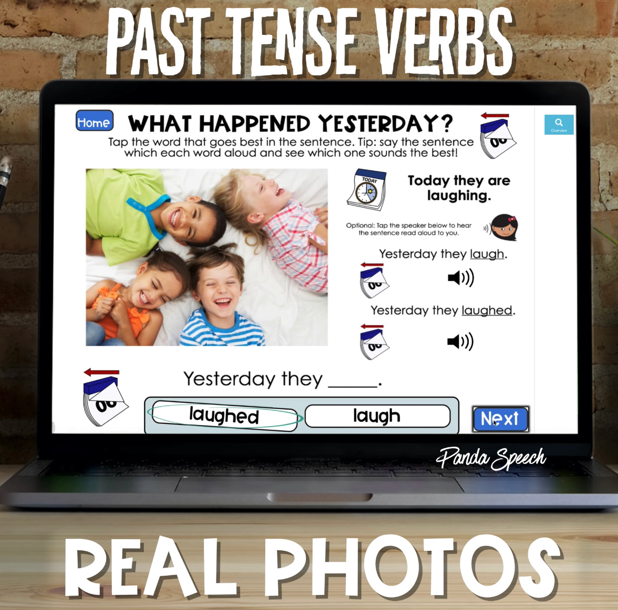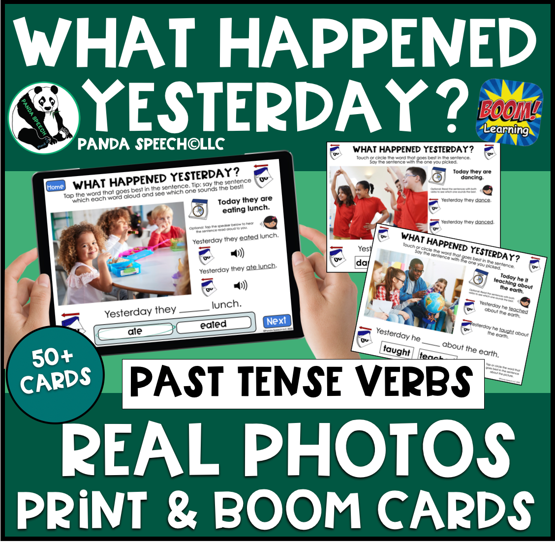 These cards were created to be work on regular and irregular past tense verbs. I provided a quick grammar review to use with students if needed. The main purpose of this deck was to provide practice but you can use them to teach the concepts too. The picture stimuli are real photos of people and things that children can relate to. This deck is great for students who struggle with these concepts orally or in their writing. They come in a printable and BOOM card (digital version).