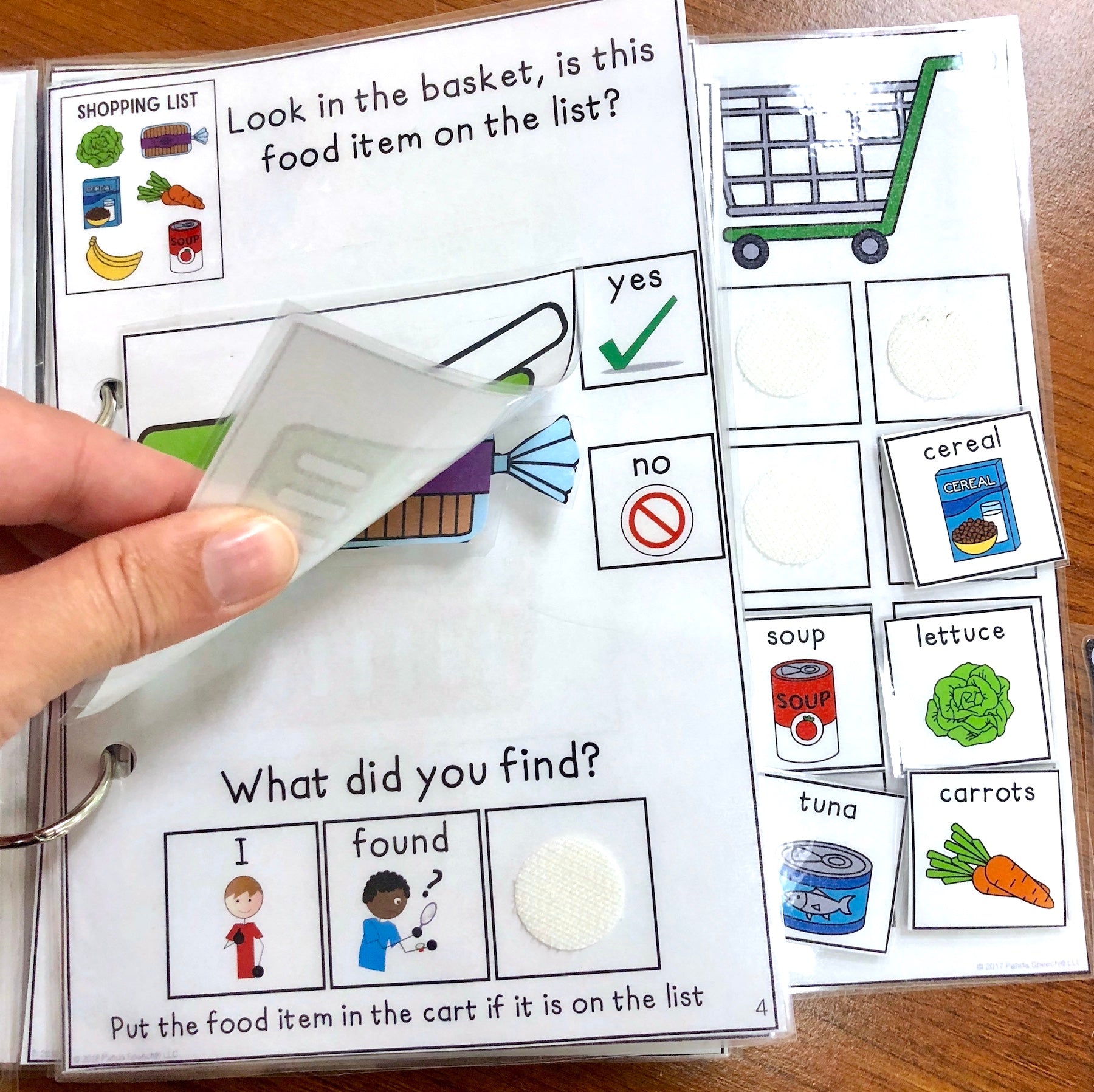 Your students will love looking in the baskets to find all of the food items on Sheldon's list! This book targets thematic vocabulary, MLU, and more! It has three interactive elements to keep your students engaged! (lift-able flaps, moveable food items, and picture symbols).