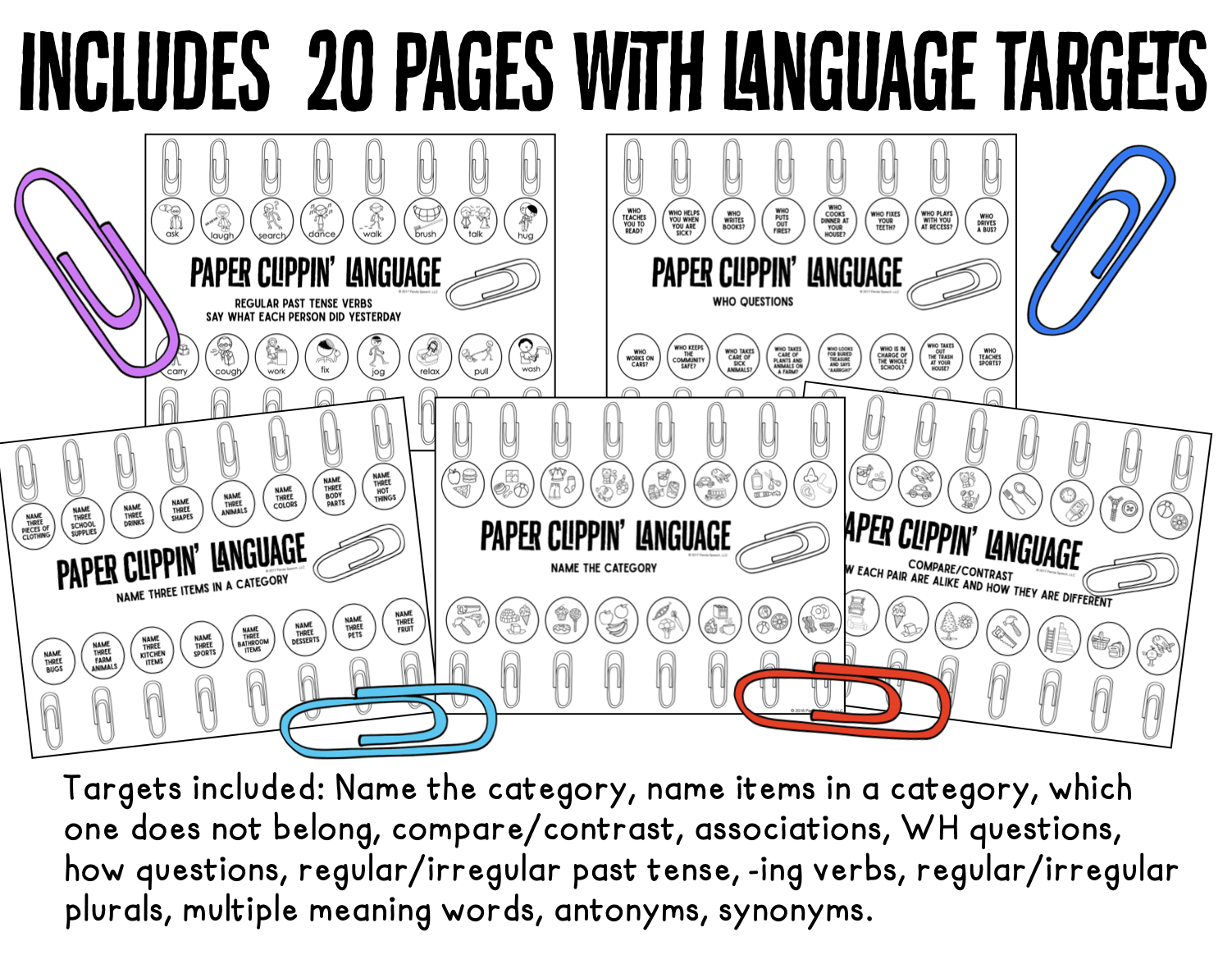 Paper Clippin' Speech Therapy: Articulation Pages + BONUS language pages