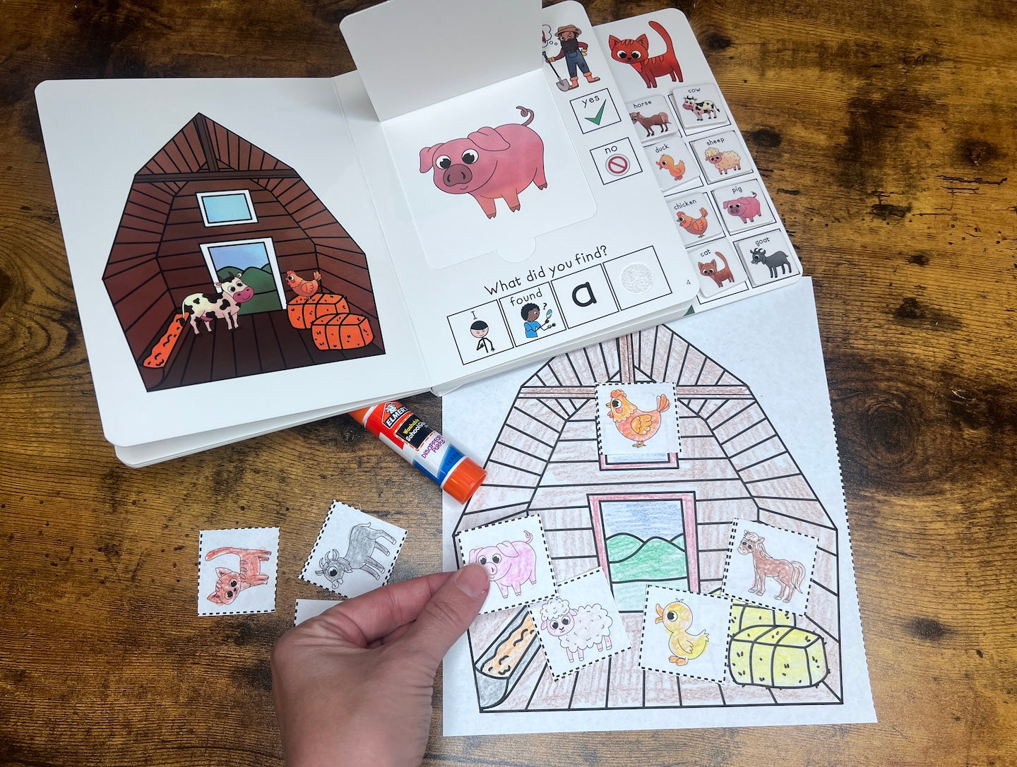 - Full-color barn and animals to print, laminate, and attach velcro to use while reading the book.
