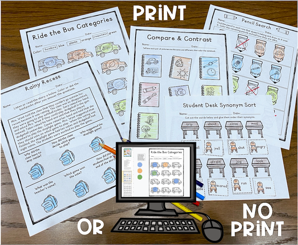 Back 2 School NO-PREP Language Pack: Designed for k-5th depending on skill level