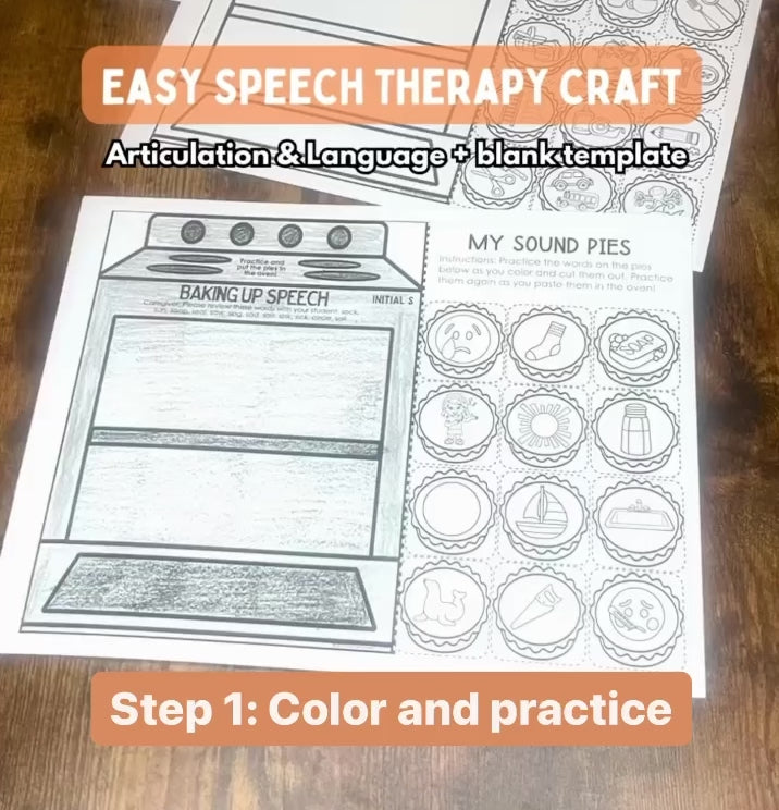 Baking Up Speech is a quick easy speech therapy craft that targets a variety of speech and language goals. This activity was designed to be a simple, no-prep activity to target articulation and language while making a simple craft. Perfect for Thanksgiving or a general baking theme. It is also a GREAT way to encourage home practice because when completing crafts it creates the “look what I made” mentality which increases the likelihood that the student will show their caregiver and review. A quick caregiver note is included. The students will practice their speech and put them in the oven.