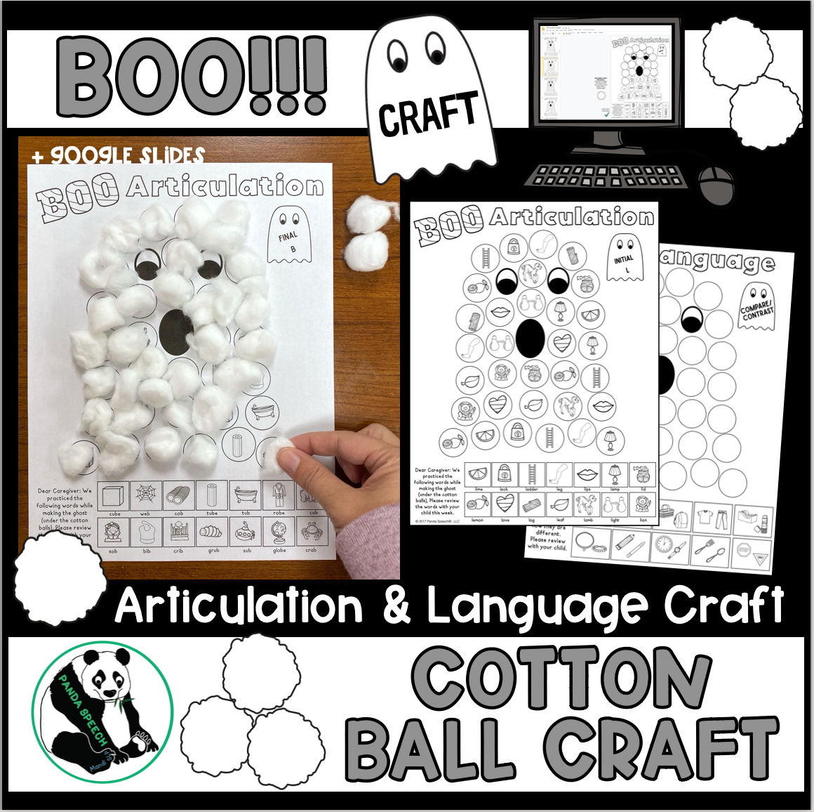 Boo Articulation and Language! Speech Therapy Cotton Ball craft