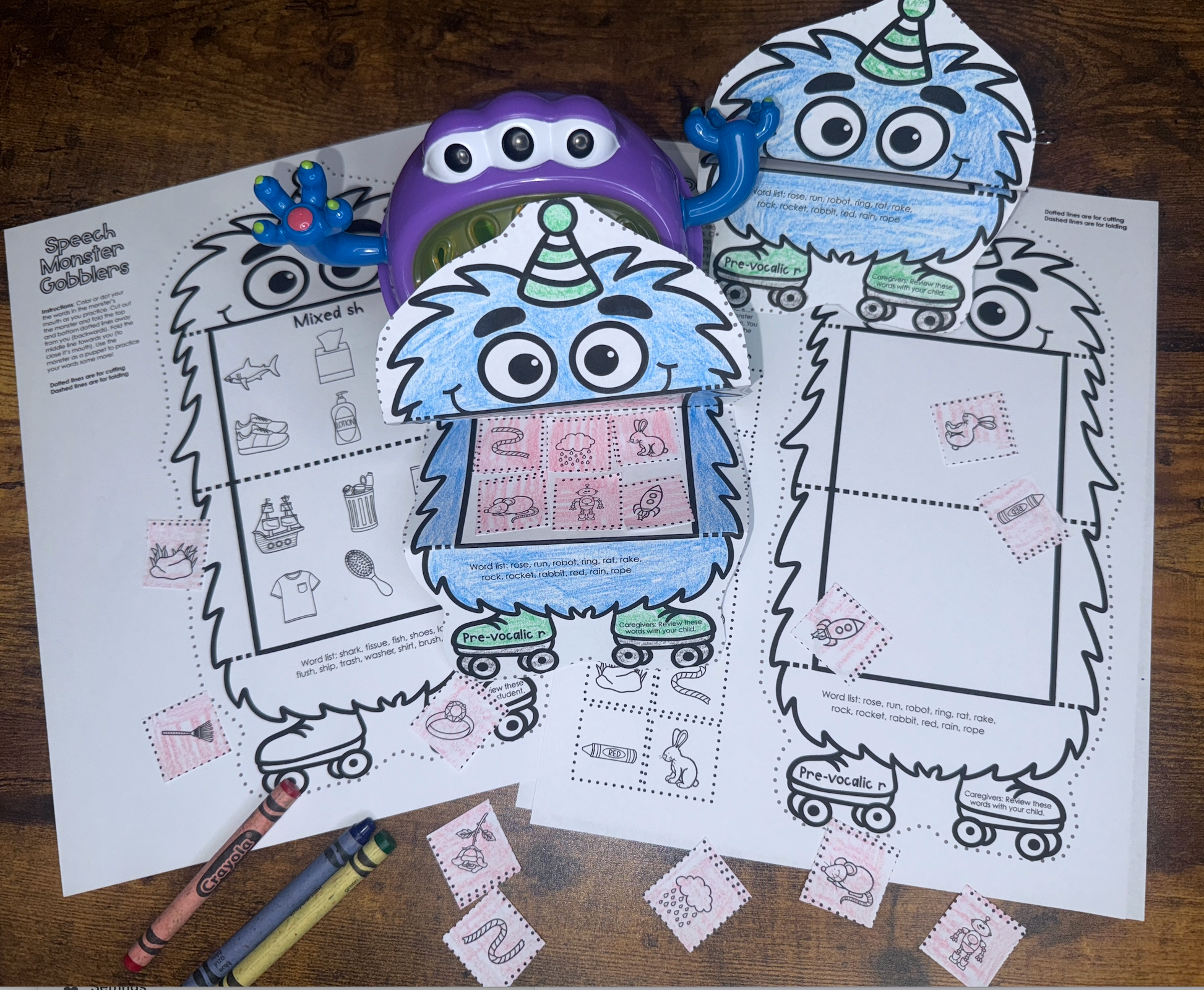 Speech Monster Gobblers for Speech Therapy ~ Articulation and Language No Prep One Page Craft