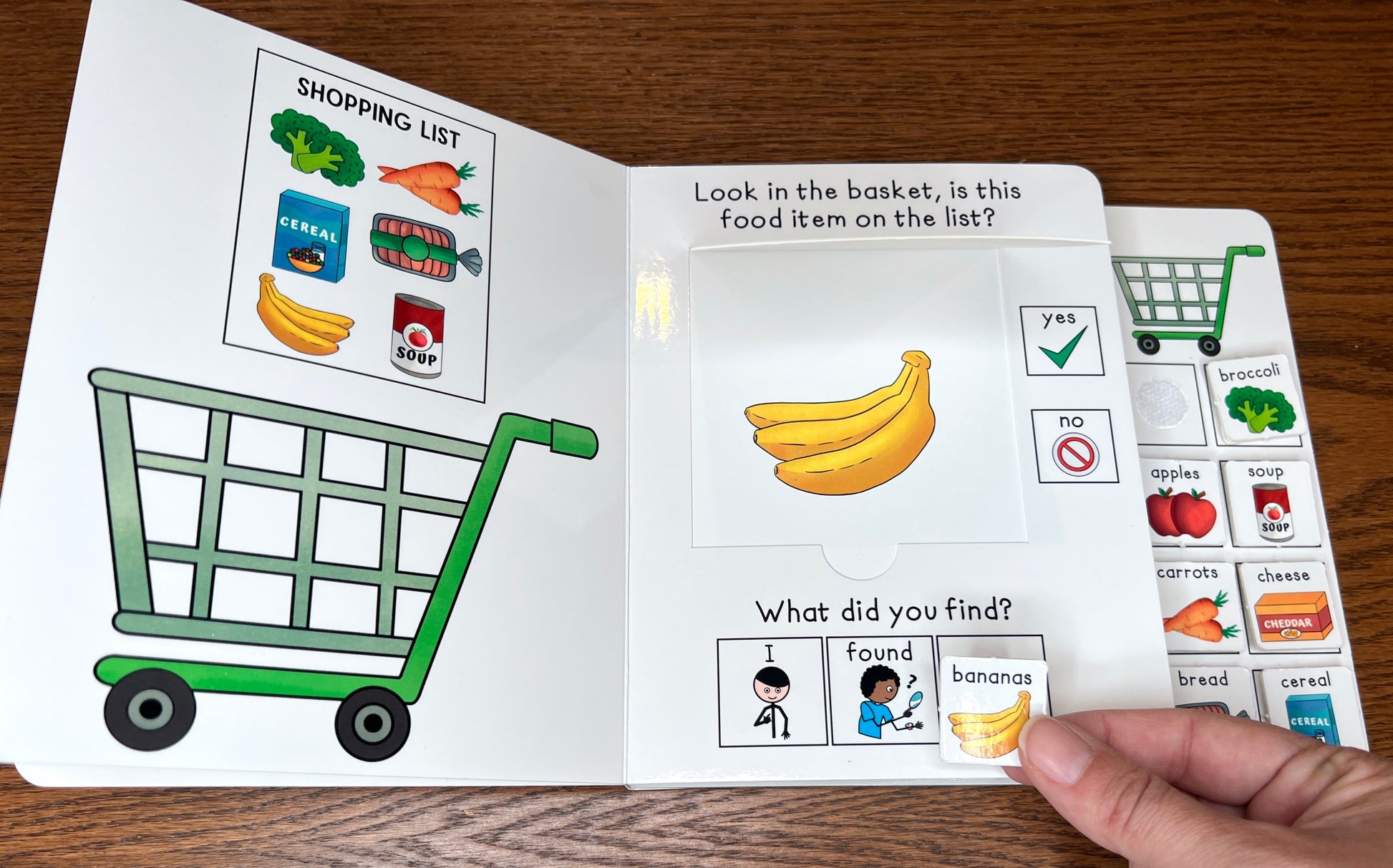 Sheldon needs to go grocery shopping! This book features a grocery list for the students to check to determine if the item under the flap is needed. As they turn the pages, their grocery cart fills up! It features yes/no visuals, lift-able flaps, and velcro pieces to put in a sentence strips.