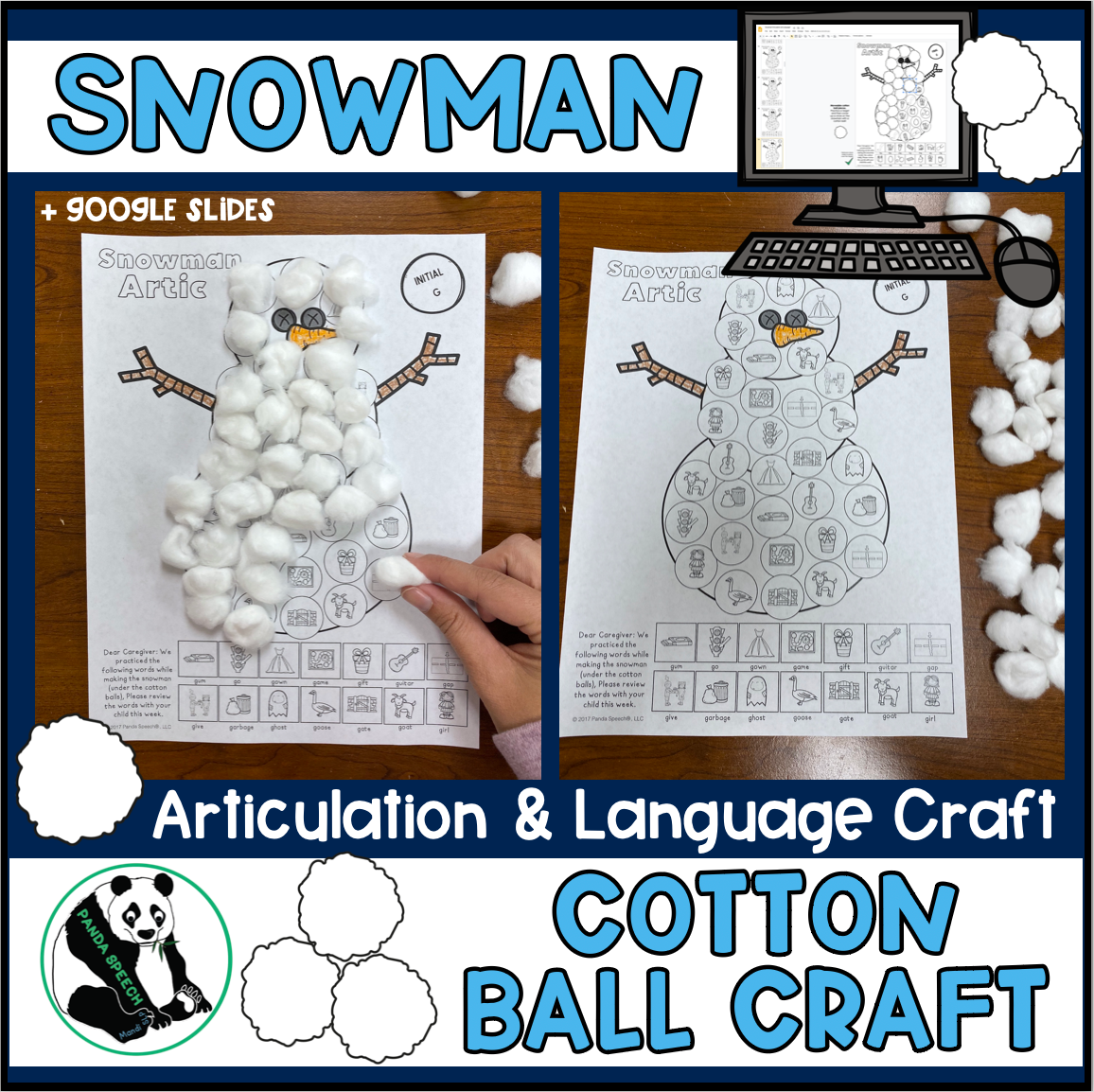 Snowman Articulation and Language! Speech Therapy Cotton Ball craft