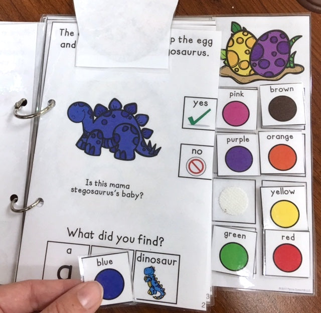 Your students will love lifting the flaps while looking for mama stegosaurus’s baby.  This book targets colors, MLU, yes/no questions, and more! It has two interactive elements to keep your students engaged! (lift-able flaps, & picture symbols)