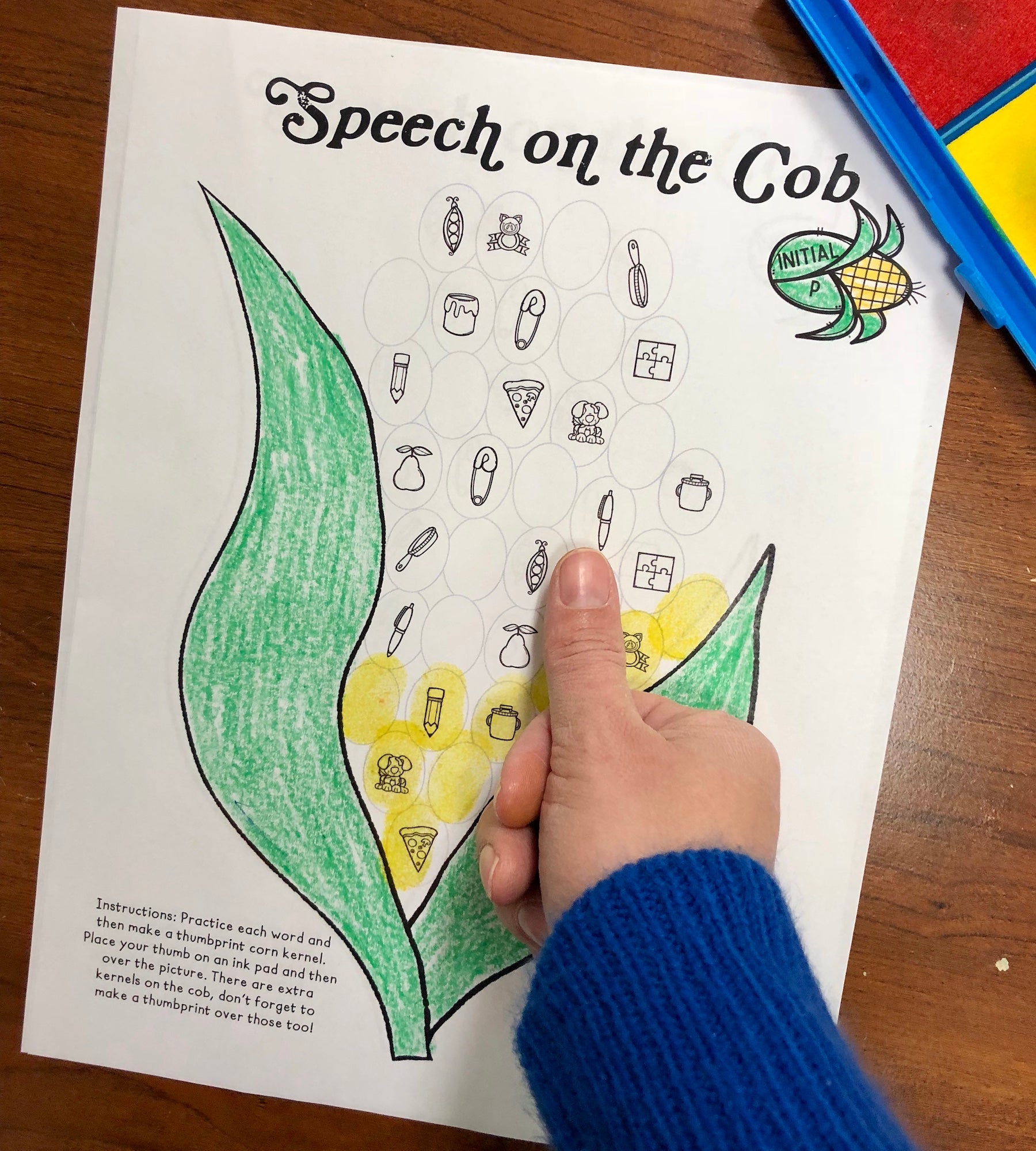 Corn on the Cob Thumbprints A Speech Therapy Craft Activity ~ Articulation Practice