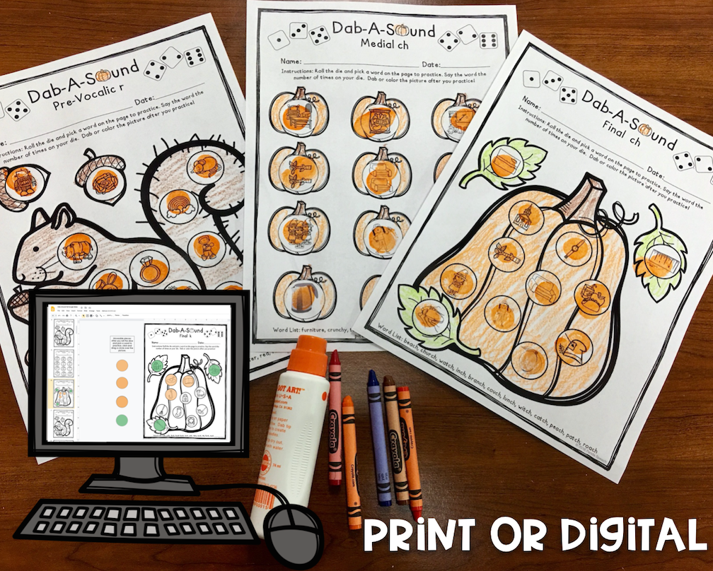 ★This is available in 2 bundles: One with my Dab A Sound Fall Articulation pack AND one in my seasonal NO PREP Language bundle. To see those bundles, scroll down to the right of this listing.