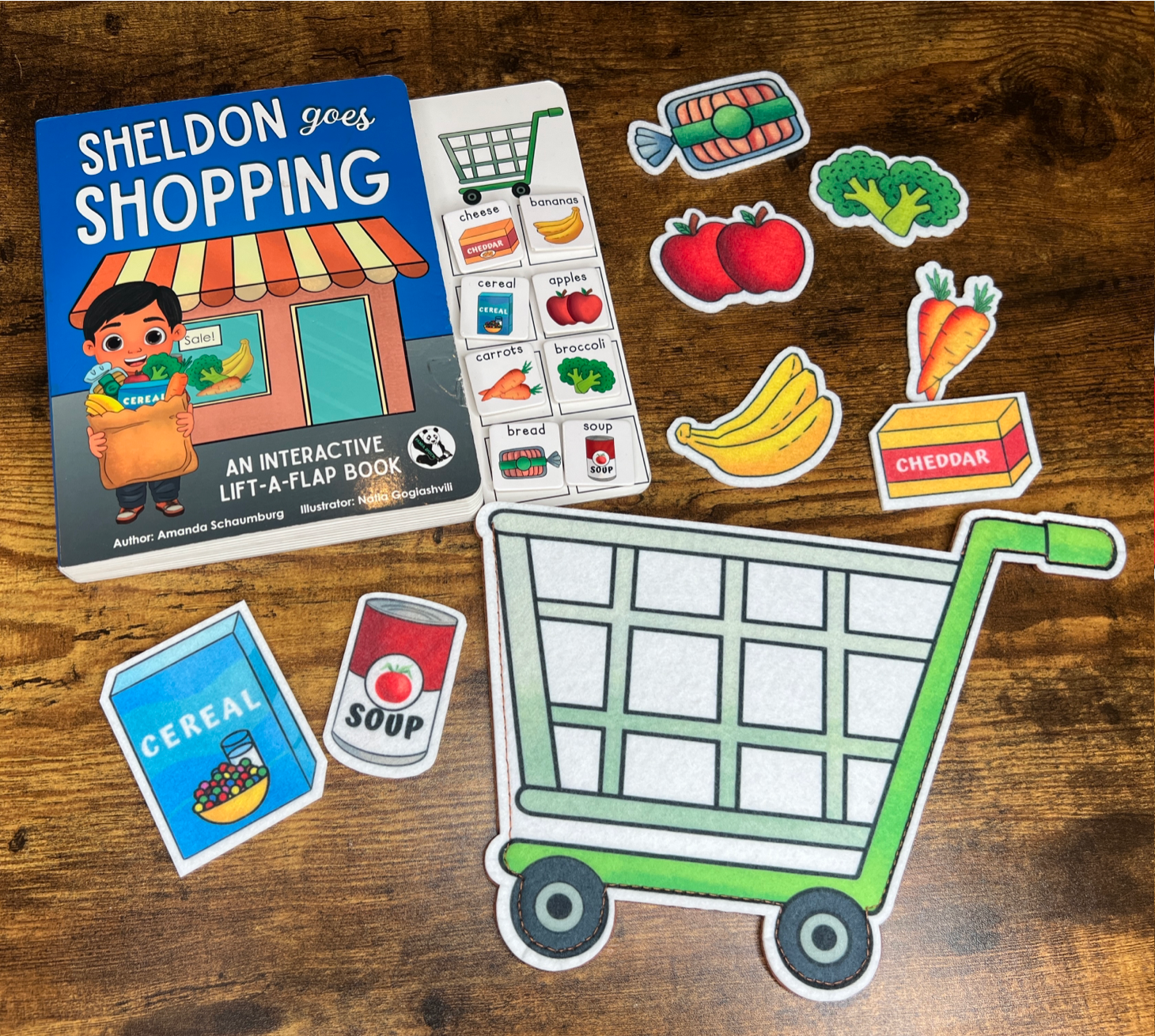Felt Story Companion Set for Sheldon Goes Shopping~ Felt grocery cart and food (from book)
