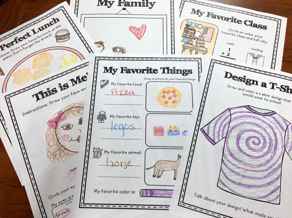 ► My favorite things: The student draws their favorite food, toy, animal, and colors in their favorite color on a crayon.