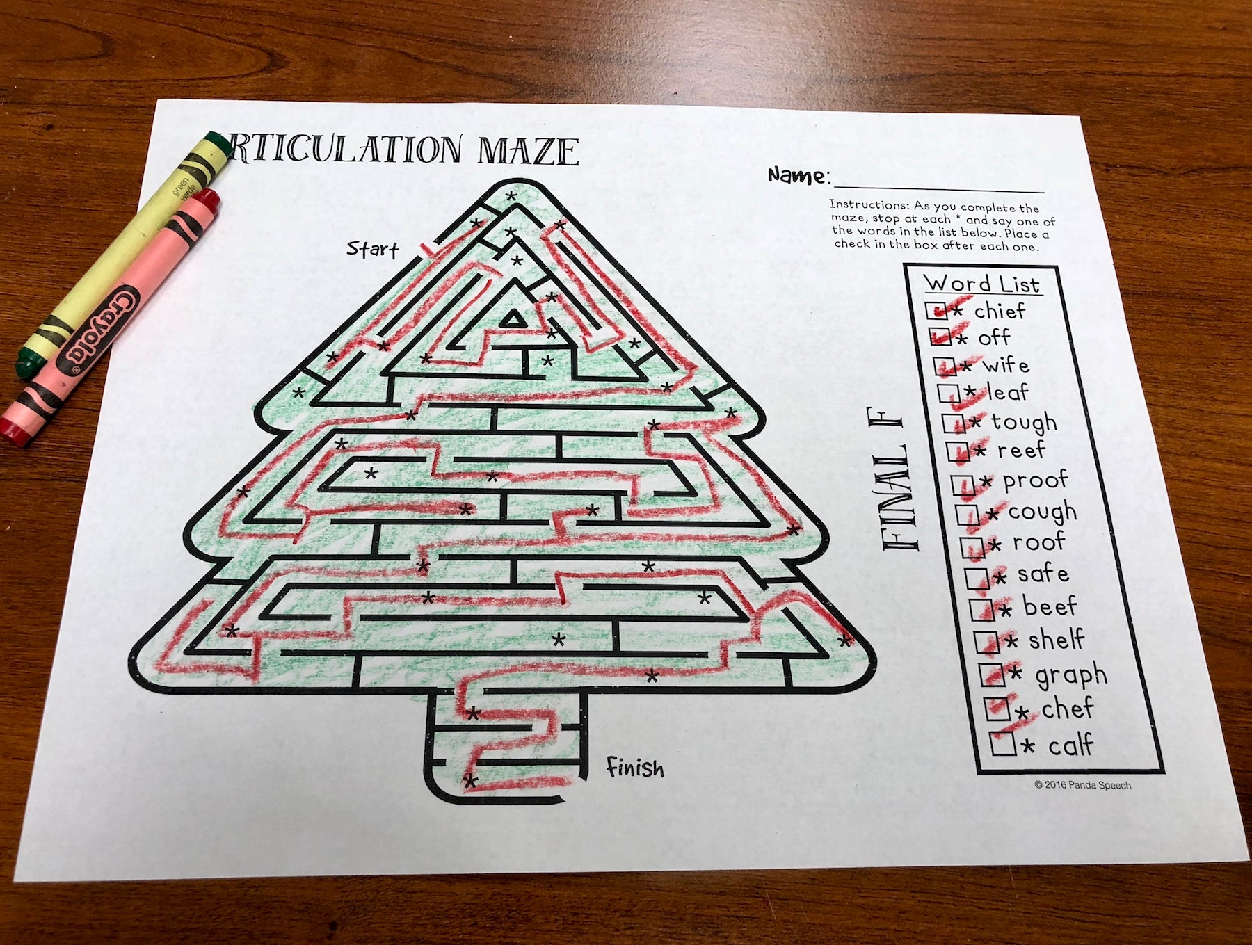 Need an engaging way to target articulation skills for those hard to motivate students? Give this a try! These fun mazes are holiday/December themed (not overtly Christmas: the mazes are a present, gingerbread man, and plain tree).