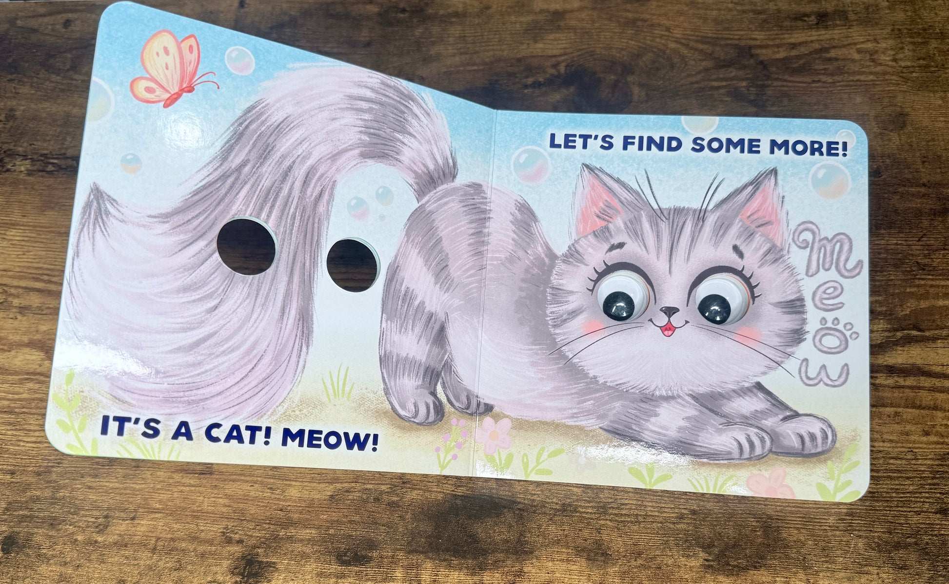 Warning: The googly eyes, if pulled off of the book, could be a choking hazard to children. Please supervise children and do not leave young children alone with this book. It is not anticipated for the eyes to come off, if this happens, reattach with strong glue. Suffocation warning: Discard plastic wrapping immediately due to suffocation risk.