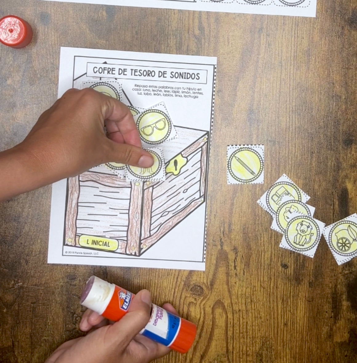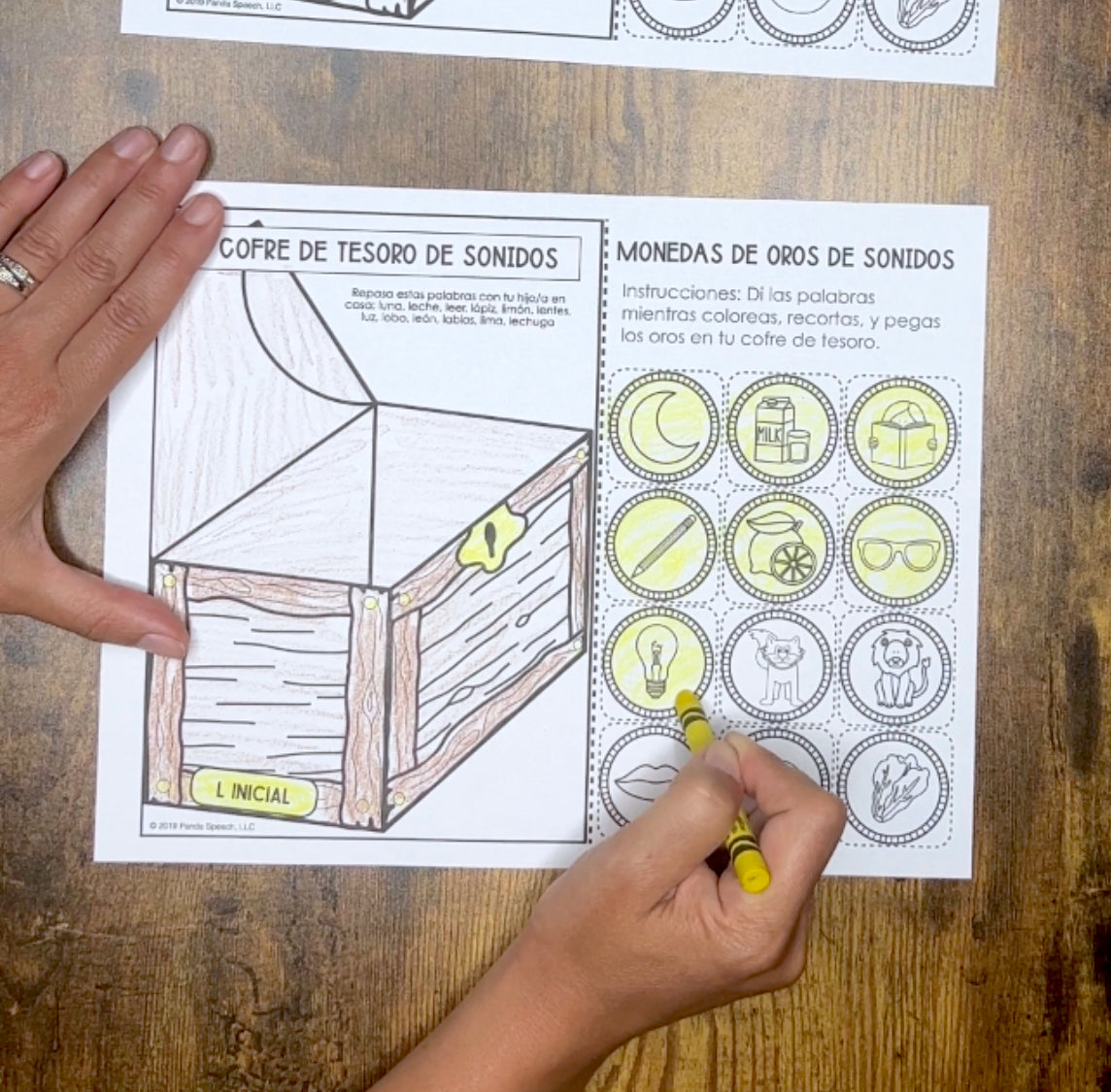 This one page craft was designed to be a simple, no-prep activity to target Spanish articulation and language targets while making a fun treasure chest. It is also a GREAT way to encourage home practice because when completing crafts it creates the “look what I made” mentality which increases the likelihood that the student will show their caregiver and review. A quick caregiver note is included on the side of the tablet.