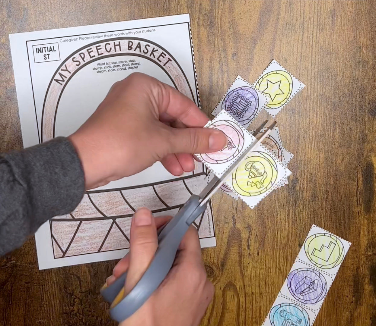 How to use: Articulation pages: The student will color and practice each target word on the easter eggs. The student will cut out the eggs and practice the words again. The student will glue each egg in the basket and practice the word one more time! If you are working in groups, have the other students color their basket in between turns. Language pages: The student will practice the skill as they color, cut out, and glue the eggs in the basket. The therapist will determine the number or trials for the articulation page.