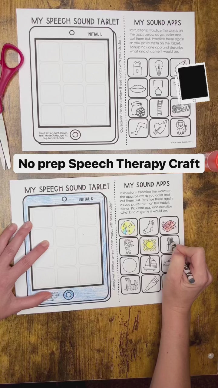 This activity was designed to be a simple, no-prep activity to target articulation and language while making a fun tablet. It is also a GREAT way to encourage home practice because when completing crafts it creates the “look what I made” mentality which increases the likelihood that the student will show their caregiver and review. A quick caregiver note is included on the side of the tablet.  Don't forget to check out the craft bundle to get 25% off  (view it on the right side of this listing, scroll to bottom)