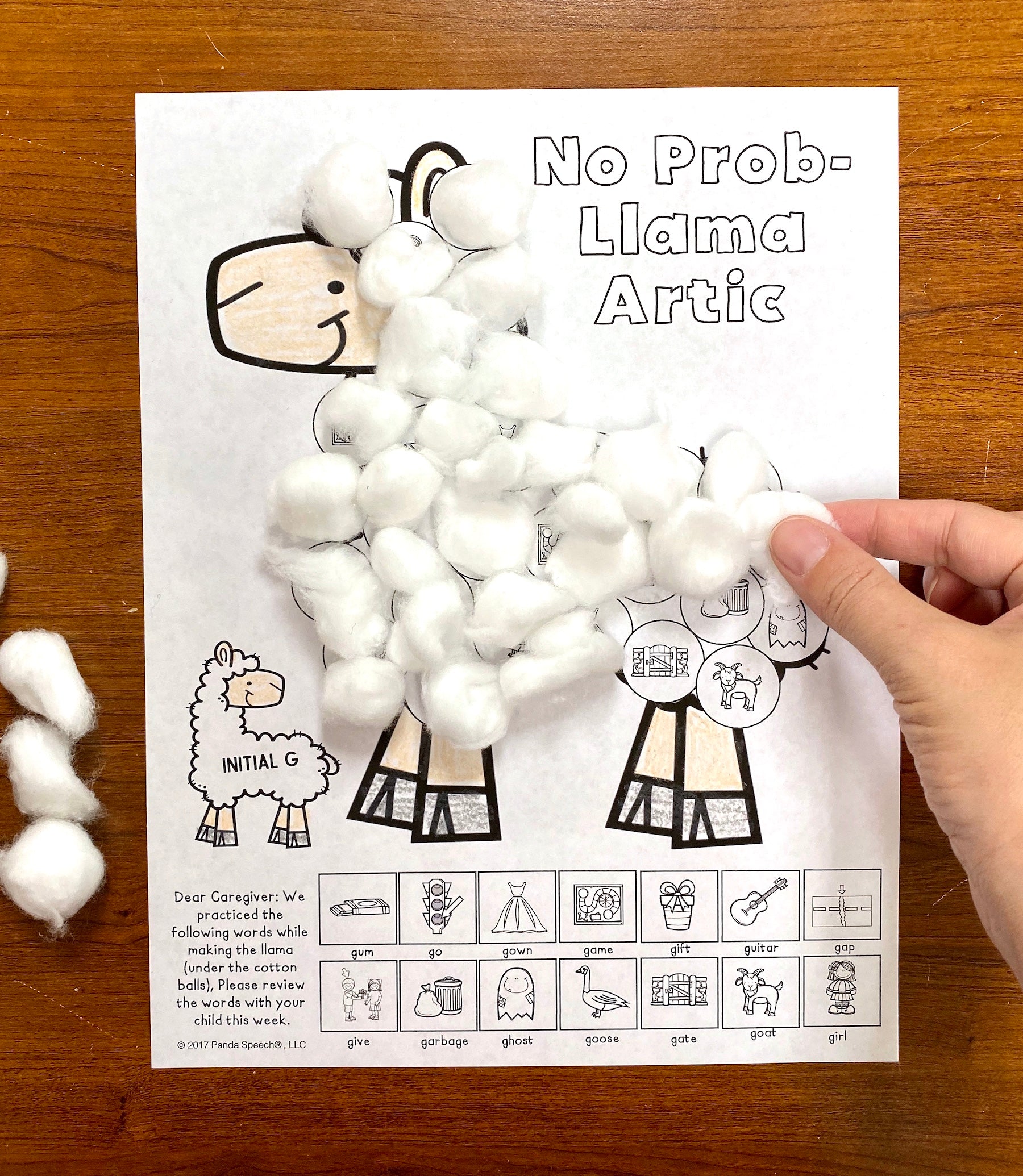 No Prob-Llama Articulation and Language! Speech Therapy Cotton Ball craft