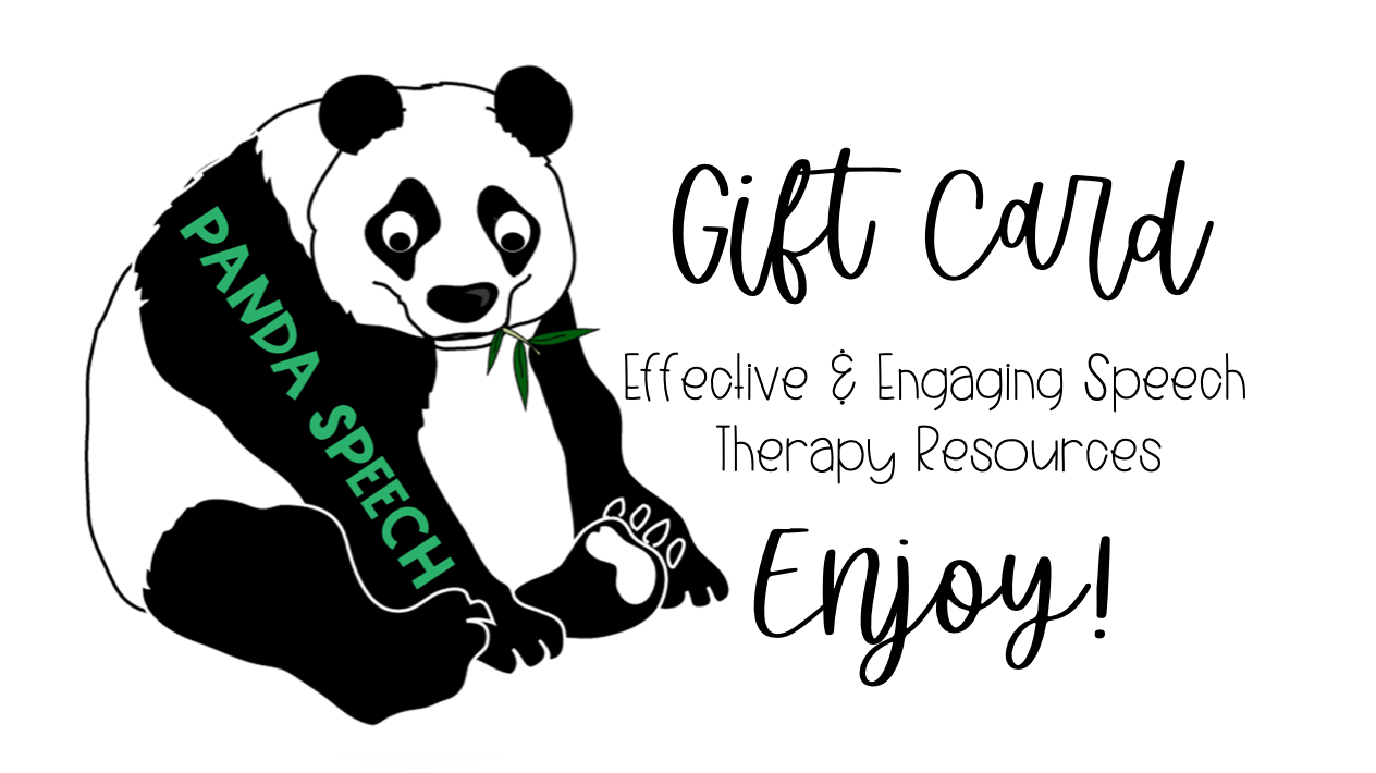 Gift your favorite parent, teacher SLP, SLPA, or SLP graduate student a Panda Speech gift card! Give them the experience of unique and engaging speech therapy resources.